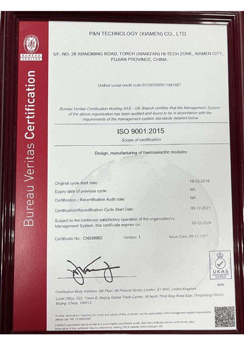 P&N è stata fondata nel 2012 da un team con oltre 20 anni di esperienza nel settore termoelettrico. L'azienda ha acquisito una tecnologia termoelettrica avanzata a livello mondiale e si dedica alla ricerca e sviluppo, progettazione e produzione di prodotti termoelettrici. La qualità e l'affidabilità dei prodotti hanno raggiunto un livello avanzato a livello mondiale. P&N si dedica a crescere e diventare un marchio riconosciuto a livello mondiale nel settore high-end, occupando una posizione dominante nel mercato. Dopo anni di duro lavoro, l'azienda ha guadagnato una alta reputazione nel settore termoelettrico. Grazie alla personalizzazione dei prodotti, alla stabilità e affidabilità degli stessi come vantaggi competitivi principali, ha accumulato una ricca base di clienti di alta qualità nel settore high-end dell'industria termoelettrica.